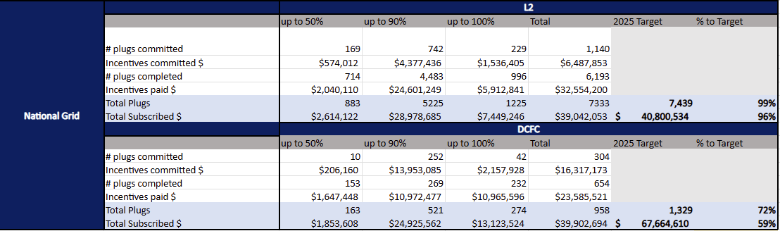 This table tracks progress toward 2025 plug goals and the amount of incentive funds that have been paid out to date. The data is updated monthly. The data is available for download here.